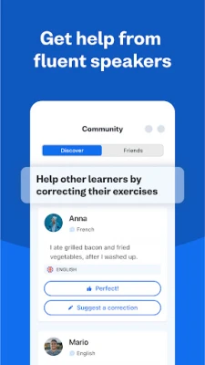 Jifunze Kihispania kwa kujiamini tangu mwanzo. Ungana na jamii yetu ya kujifunza lugha mtandaoni na upate maoni kutoka kwa wazungumzaji fasaha. Tazama kwa urahisi unachohitaji marekebisho, kutoka vitenzi hadi matamshi, na ujifunze kuongea Kihispania na lugha zingine haraka zaidi.