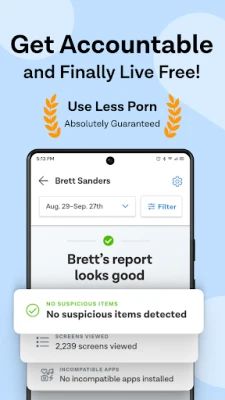 Ukiwa na Ever Accountable, una uwezo wa kufuatilia maendeleo yako kupitia ripoti za kina zinazojumuisha muda uliotumia kwenye programu mbalimbali na hata vijisehemu vya picha za skrini (hiari). Mfumo huu mahiri huarifu papo hapo endapo maudhui yasiyofaa yatagunduliwa, na hutoa tahadhari pindi programu inapojaribu kuondolewa bila ruhusa. Ever Accountable iliundwa na wataalamu wenye ujuzi wa kina wa mbinu za kuepuka uwajibikaji, kuhakikisha ulinzi kamili. Huzuia mbinu zote za siri kama vile kuvinjari bila kujulikana, kufuta historia ya kivinjari, au kusimamisha programu kwa nguvu, kuhakikisha uwajibikaji kamili bila mianya yoyote.